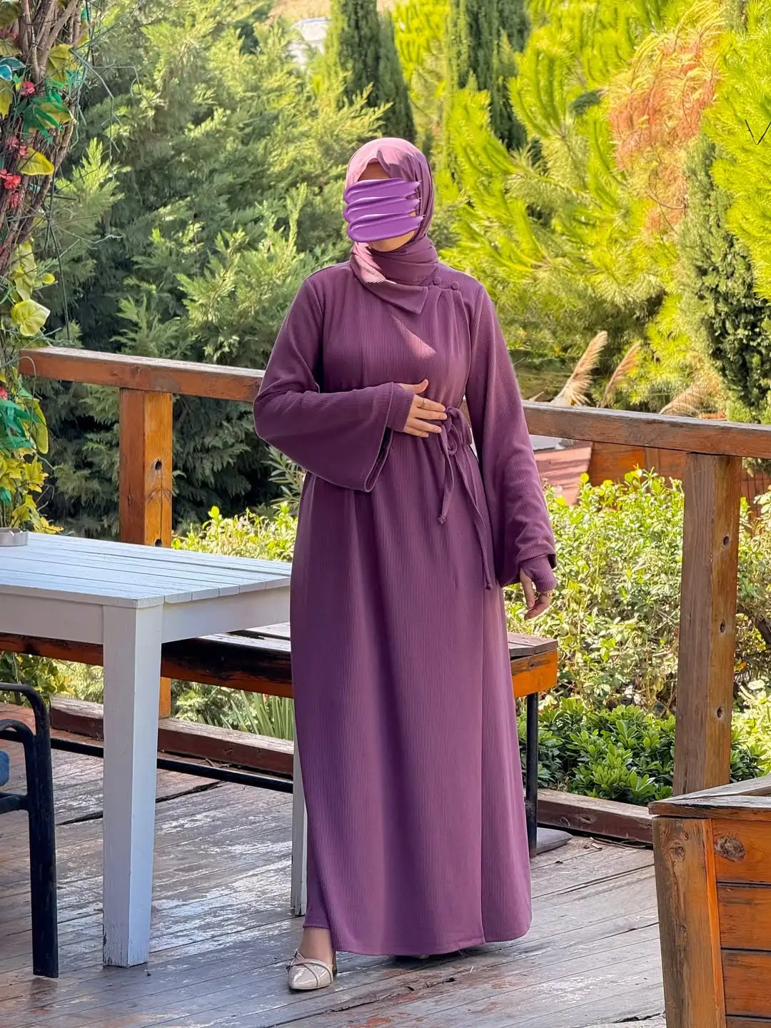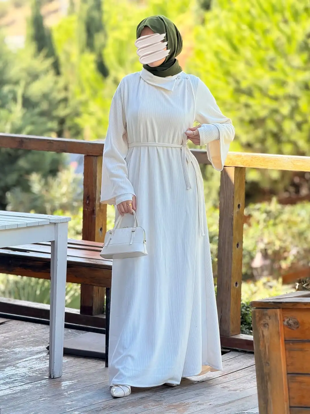 🎀 تنسيق مثالي مع: طرحة بيج أو أوف وايت، حقيبة صغيرة بلون محايد، وحذاء بسيط بنفس الأسلوب