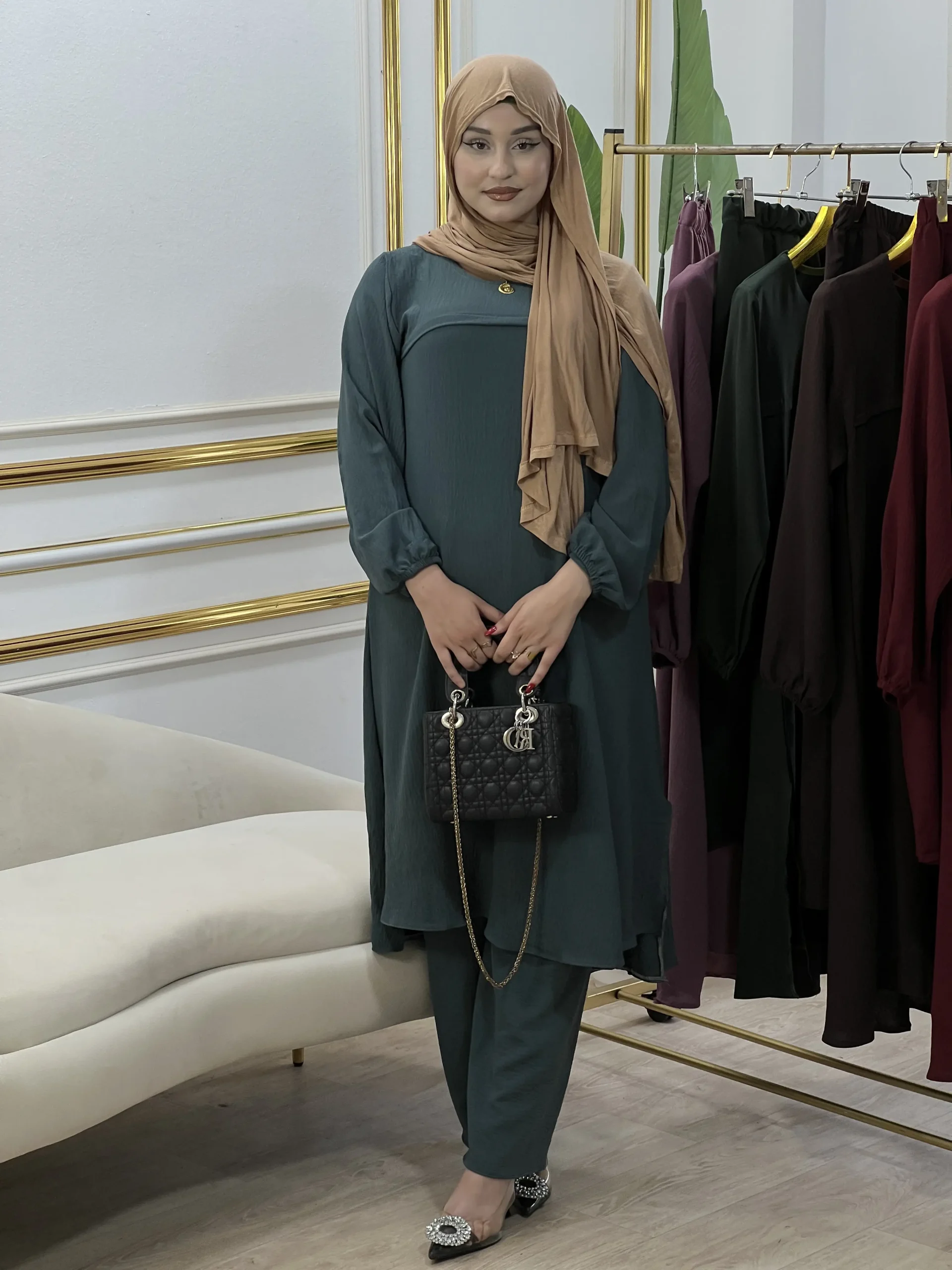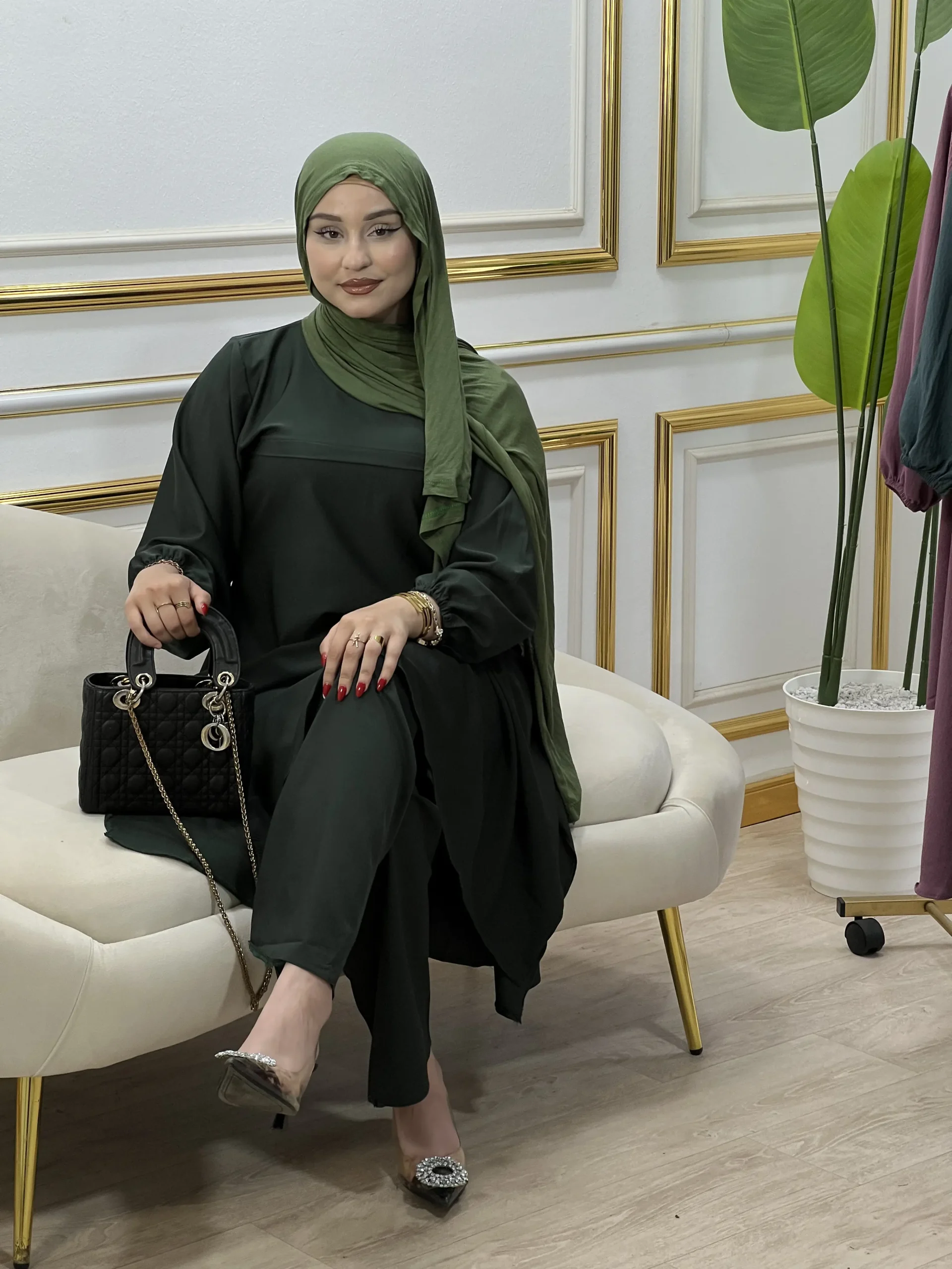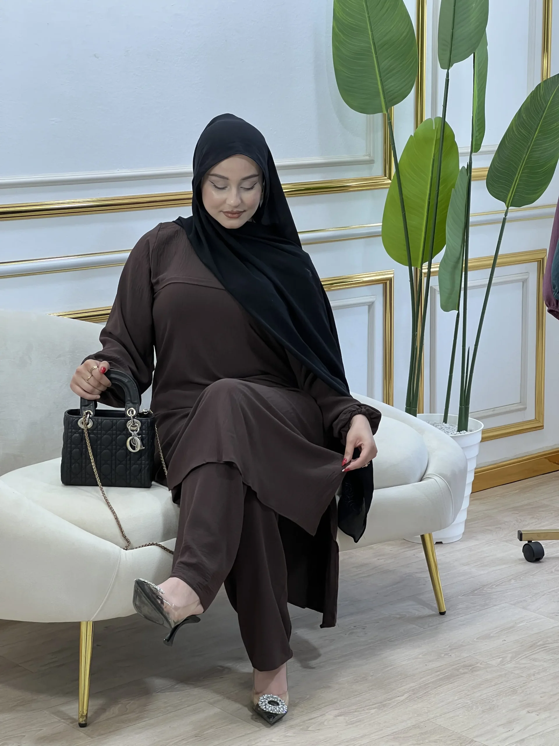 لأنه زي متكامل (سروال + ايكات) يجمع بين الاحتشام والأناقة، صمم خصيصًا للمعلمات، الموظفات، أو أي امرأة تبحث عن إطلالة عملية للعمل أو الخروجات دون عناء التنسيق!