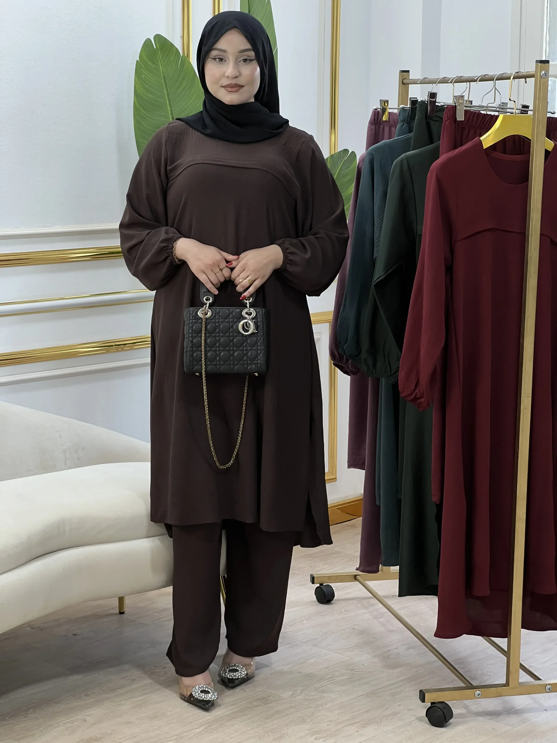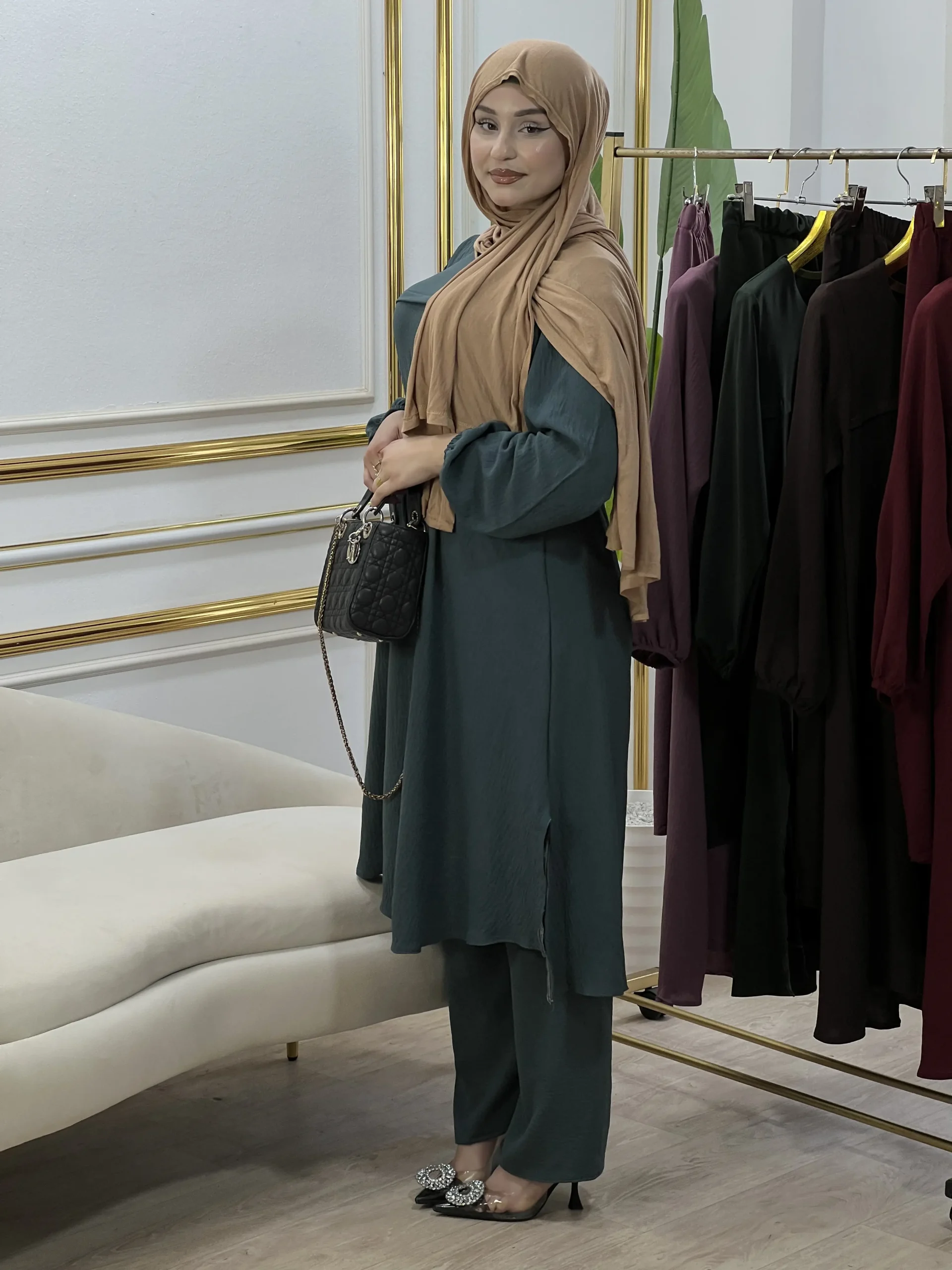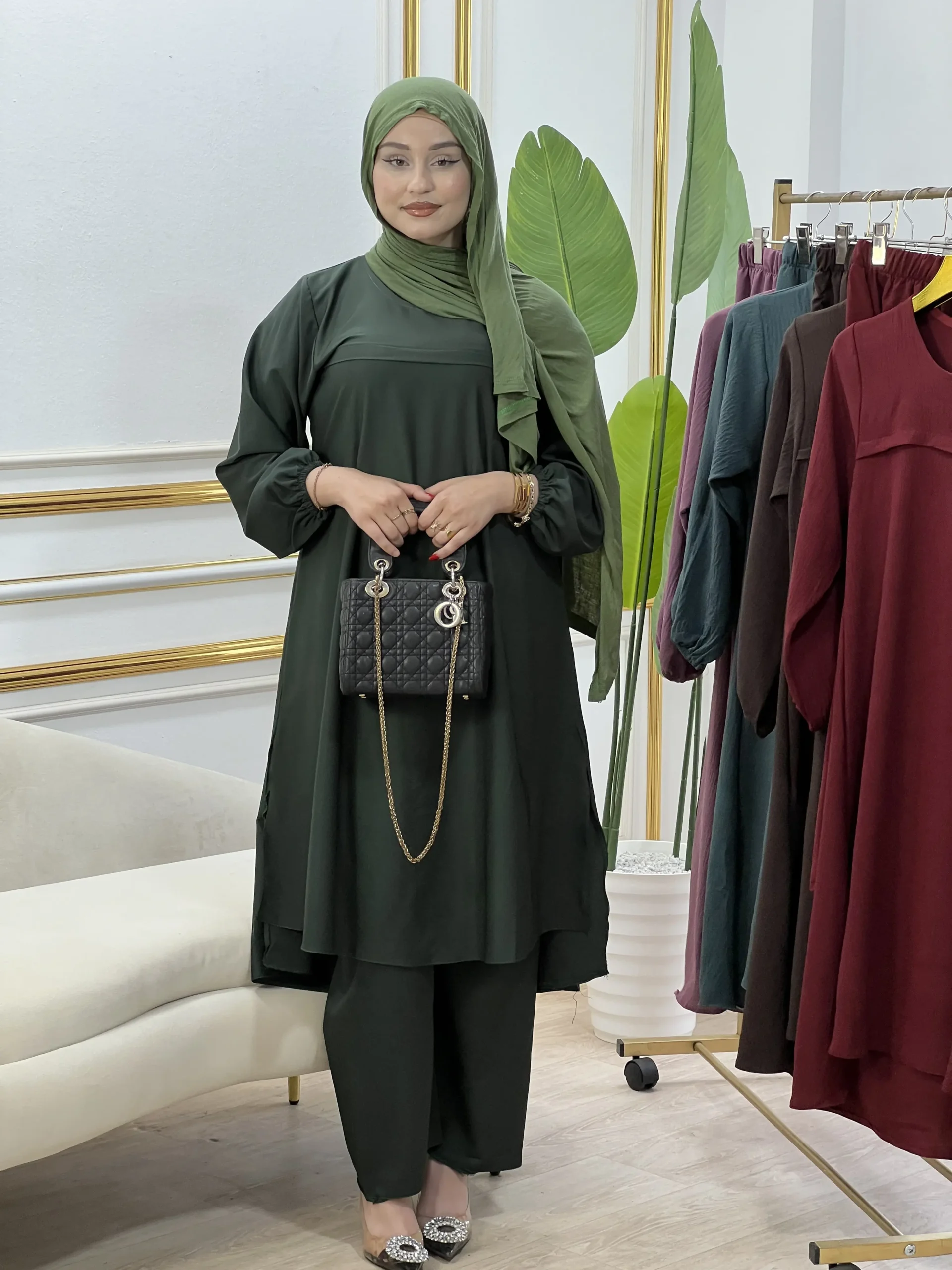 لأنه زي متكامل (سروال + ايكات) يجمع بين الاحتشام والأناقة، صمم خصيصًا للمعلمات، الموظفات، أو أي امرأة تبحث عن إطلالة عملية للعمل أو الخروجات دون عناء التنسيق!