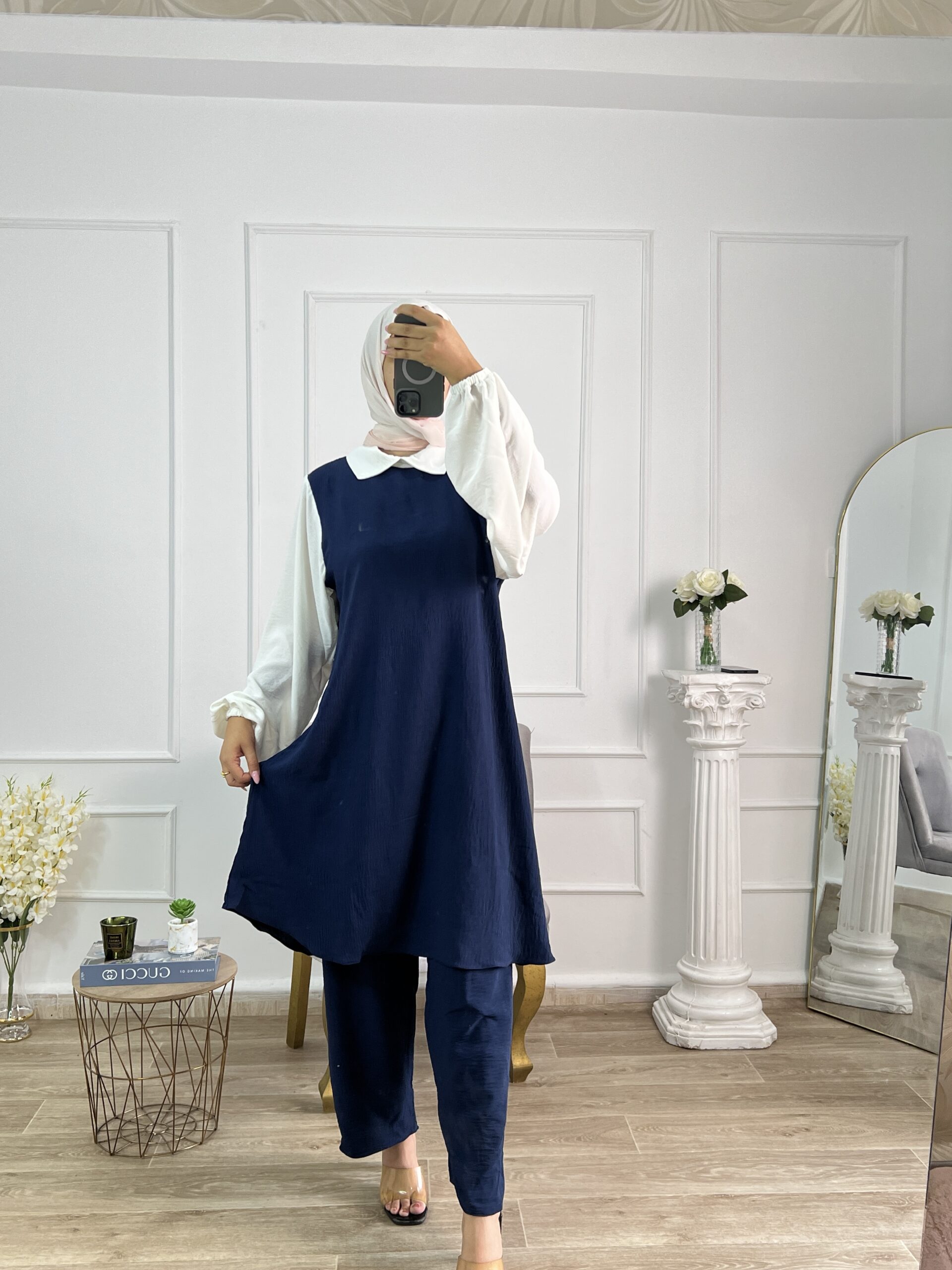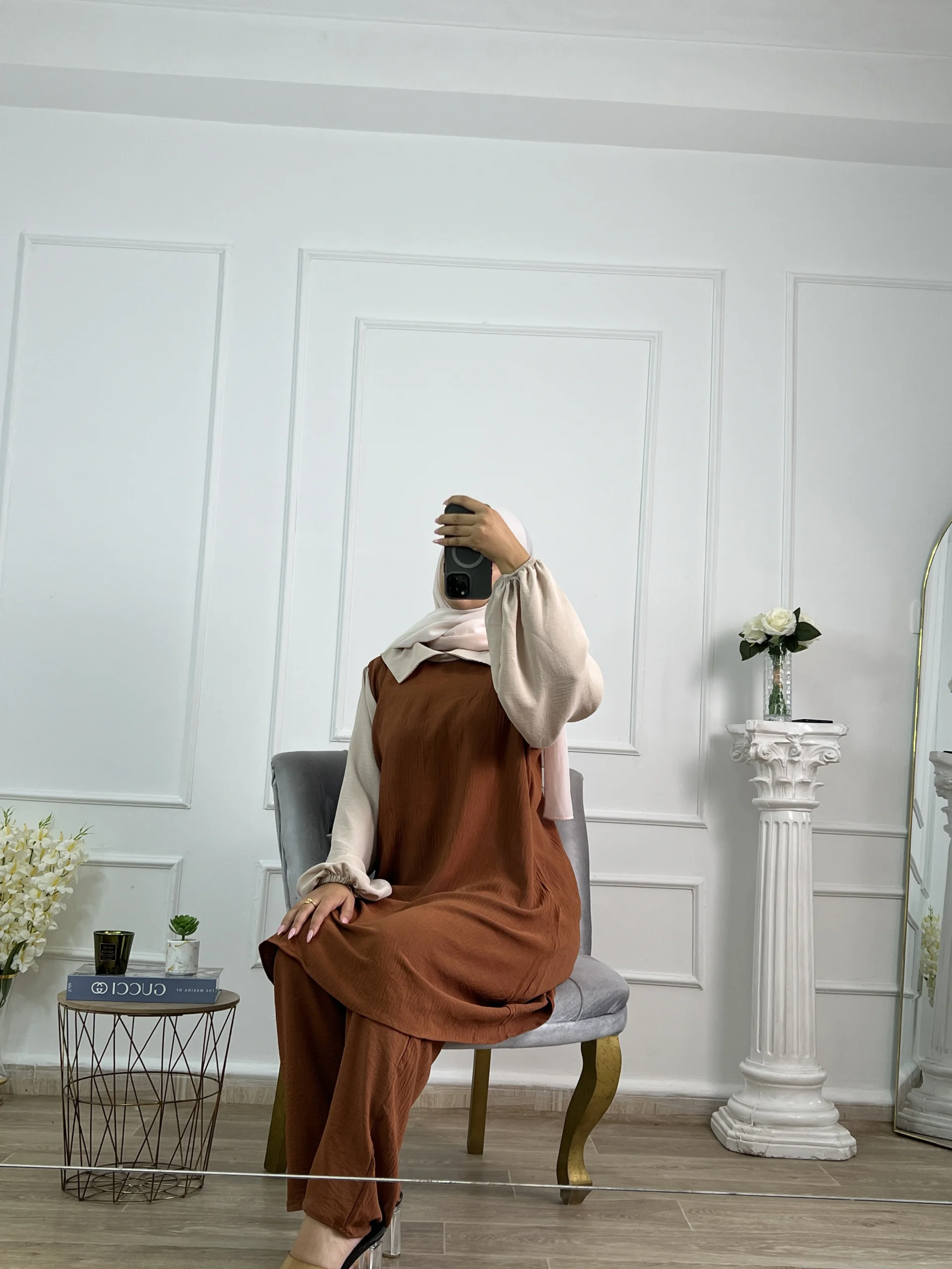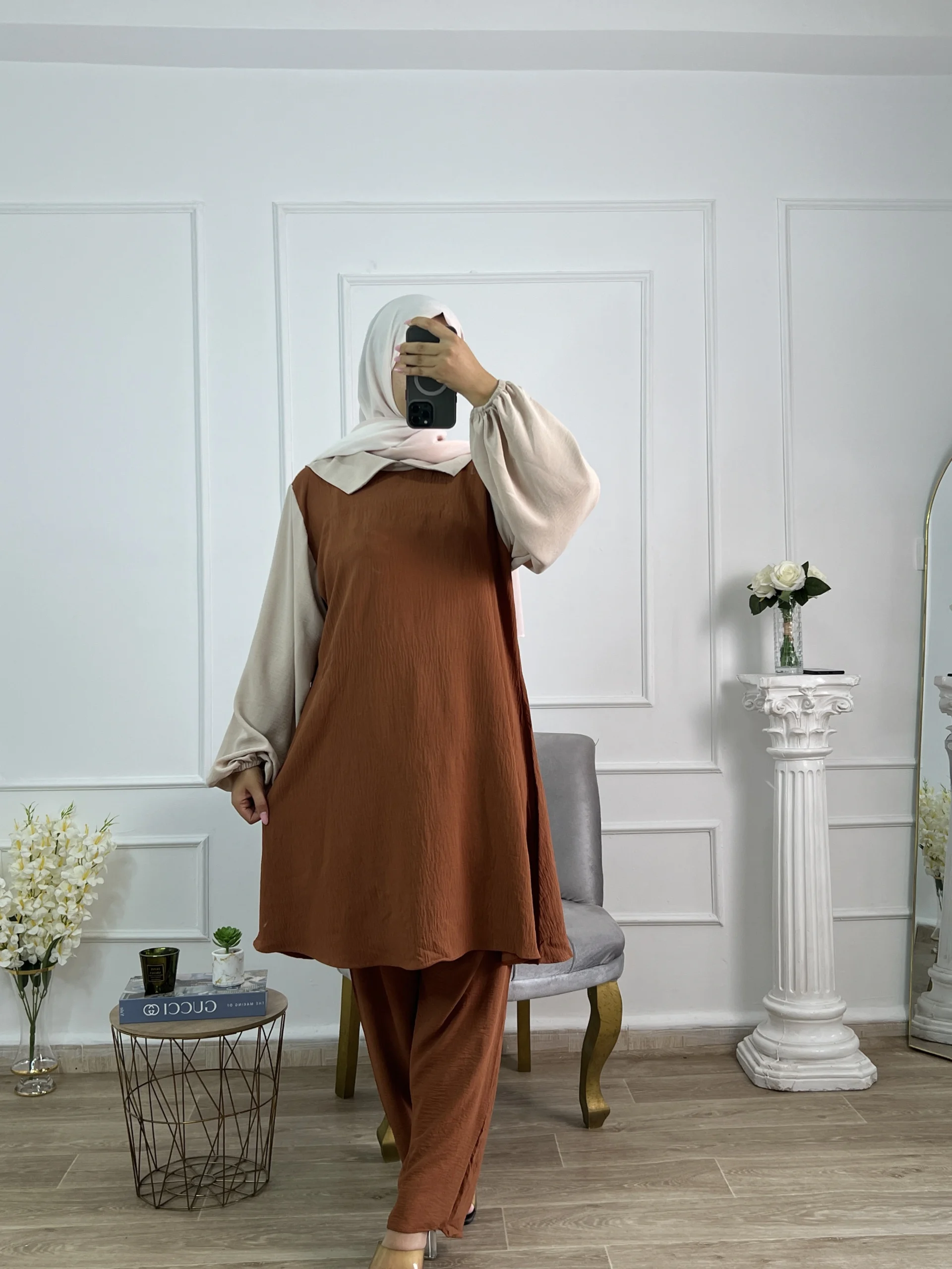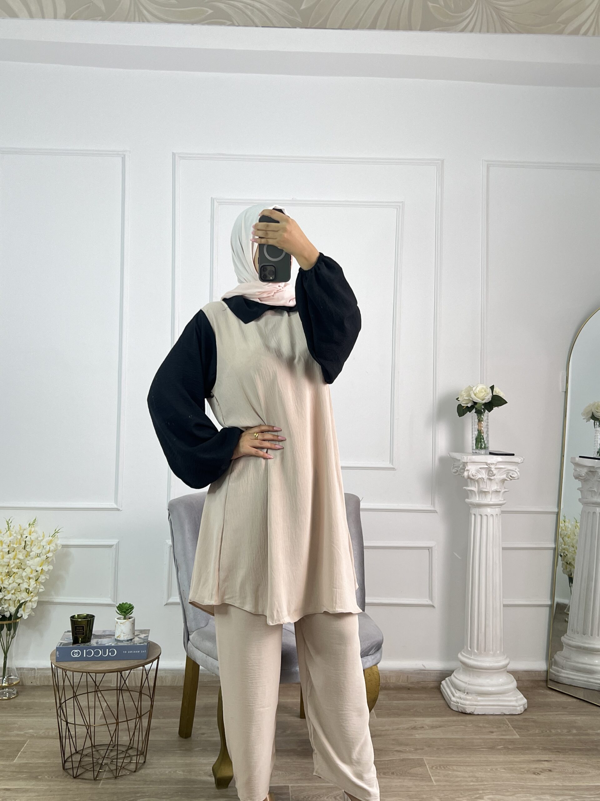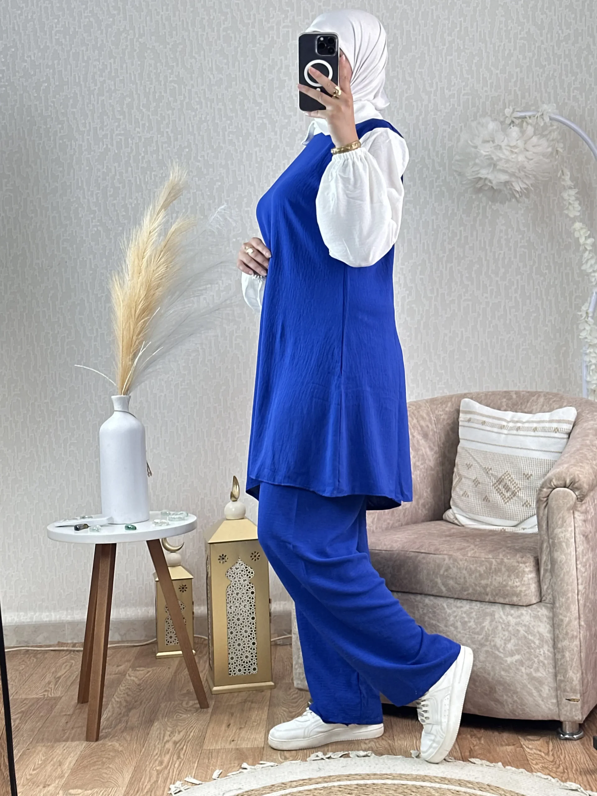 لأنه زي متكامل (سروال + ايكات) يجمع بين الاحتشام والأناقة، صمم خصيصًا للمعلمات، الموظفات، أو أي امرأة تبحث عن إطلالة عملية للعمل أو الخروجات دون عناء التنسيق!