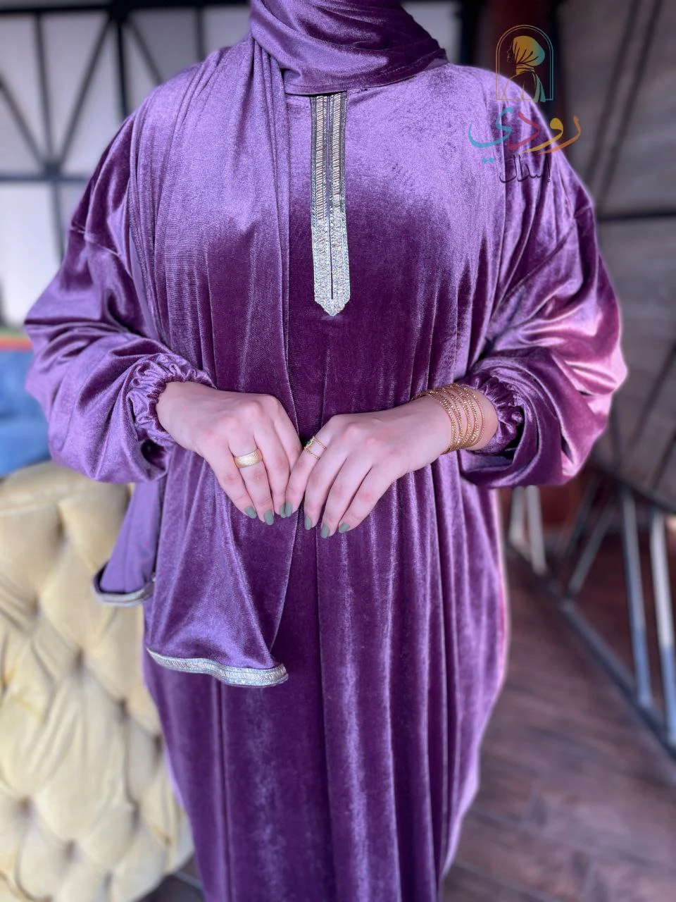 ابحثي عن الإحساس بالاستثنائية؟ إسدالتنا المصنوع من خامة القطيفة الفاخرة هو اختيارك المثالي الذي يجمع بين الأناقة والراحة المطلقة. تم تصميمه ليصبح الجزء المفضل في خزانتك، سواء للصلاة أو للخروج في مناسباتك اليومية.
