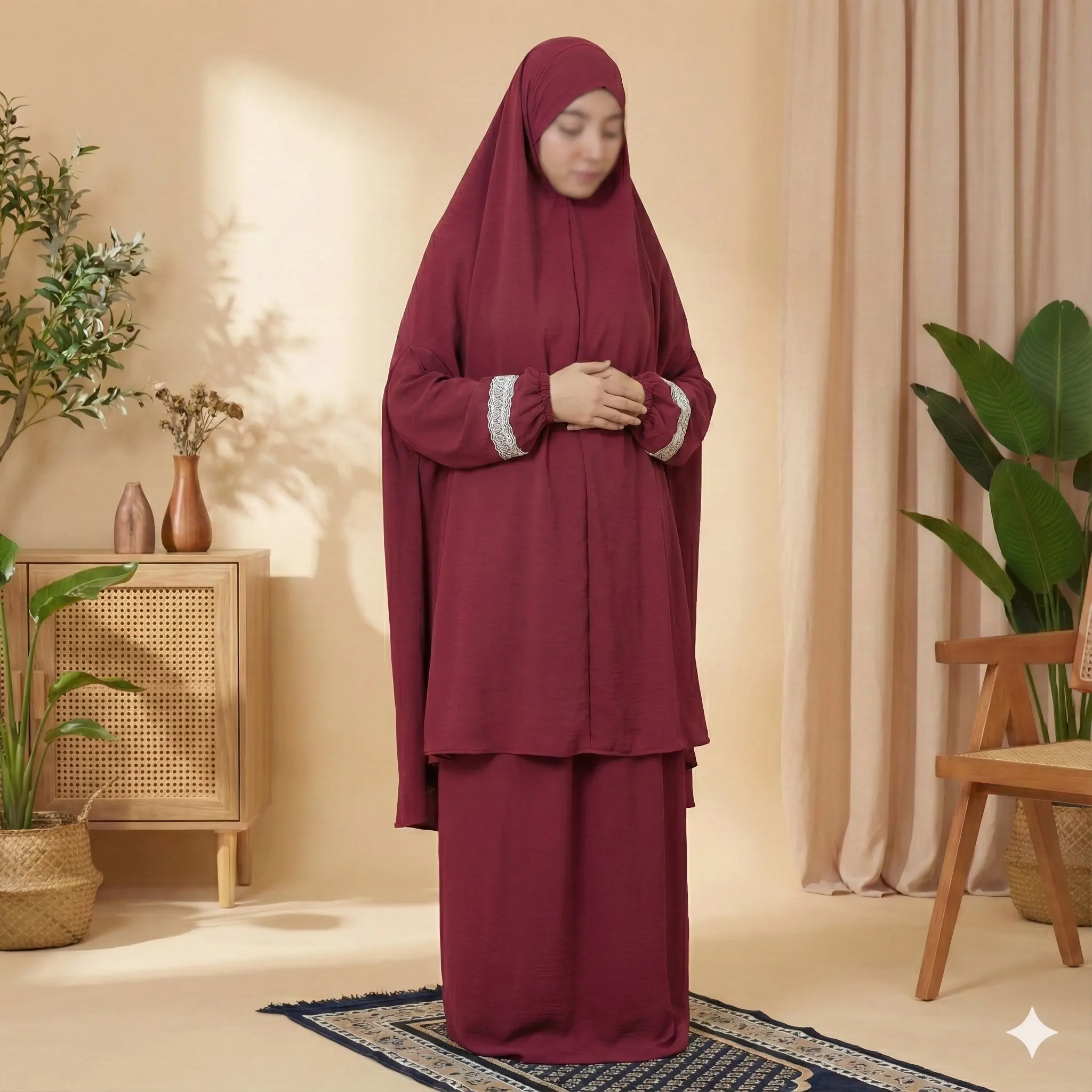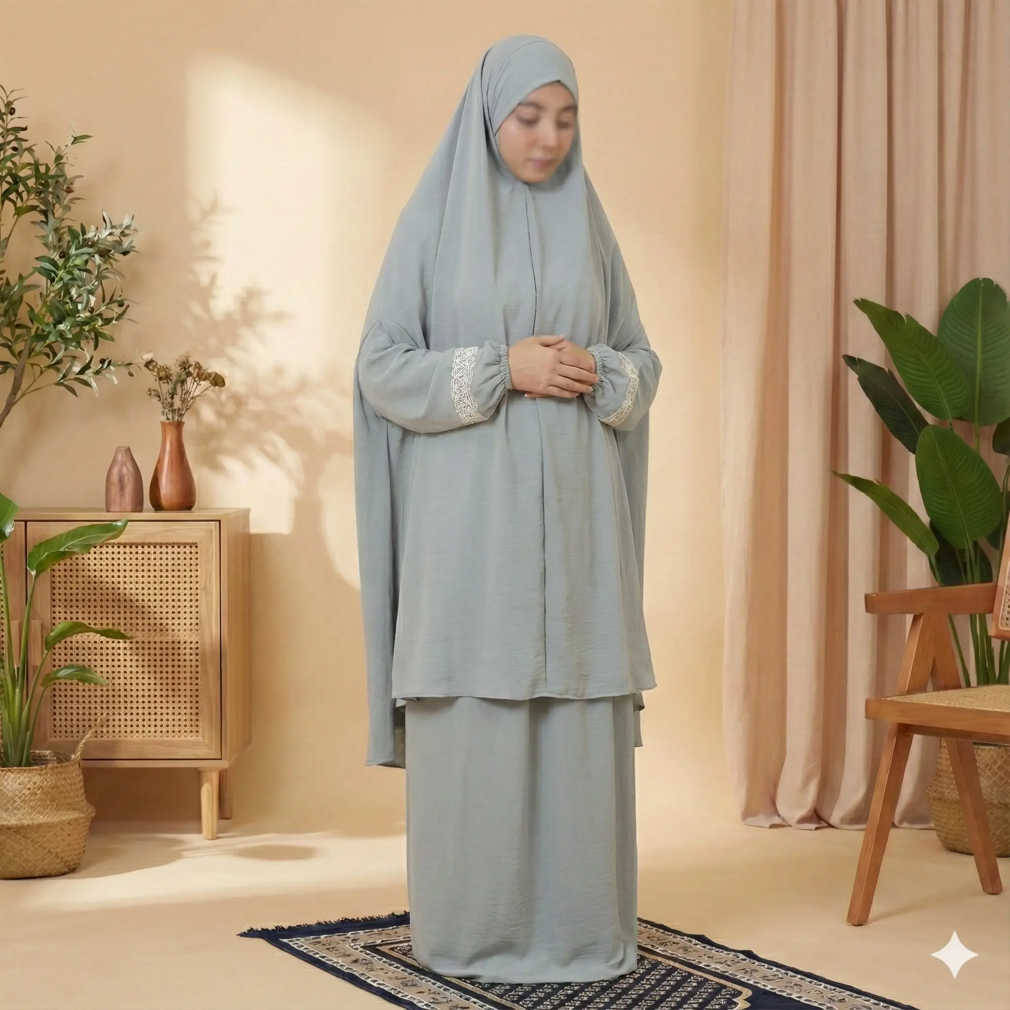 استقبلي شهر رمضان والأعياد بأسلوب أنيق ومريح مع طقم الصلاة القطعتين الفريد من Anwar Top. تصميم عصري يجمع بين الجمال العملي، ليمنحكِ إطلالة مميزة سواء للصلاة أو الخروج.